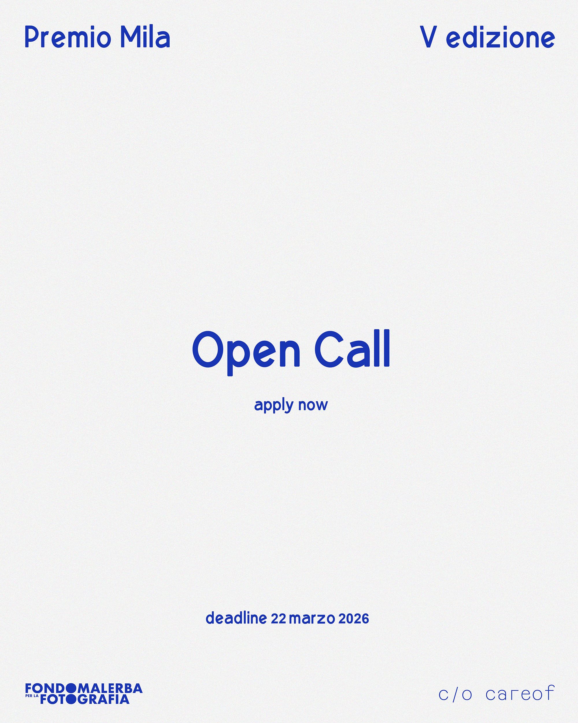Il Fondo Malerba presenta la V edizione del Premio Mila per la Fotografia Contemporanea. Il Premio prevede la definizione di una shortlist di 5 artist*, i cui lavori saranno inclusi in una mostra collettiva negli spazi di Careof. Tra questi, sarà assegnato a* vincit* il premio di acquisizione per un valore di euro 3.000.